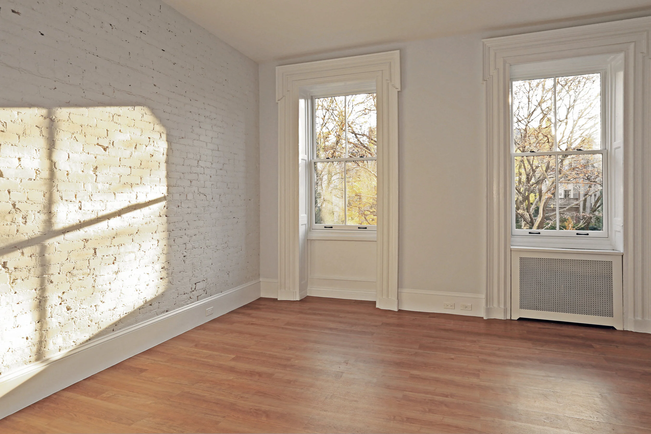 This stately townhouse sits on a beautiful Chelsea street steps away from the High Line on New York City’s west side. After years of being partially vacant, the design team* worked with the owners to renovate the garden duplex unit and three full-floor apartments into three rental units and an owner-occupied penthouse unit. Per the owners’ wishes to renovate the building on a relatively modest budget, a large portion of funds was allocated to plumbing, electrical and Landmarks approved windows which were all or almost fully replaced.