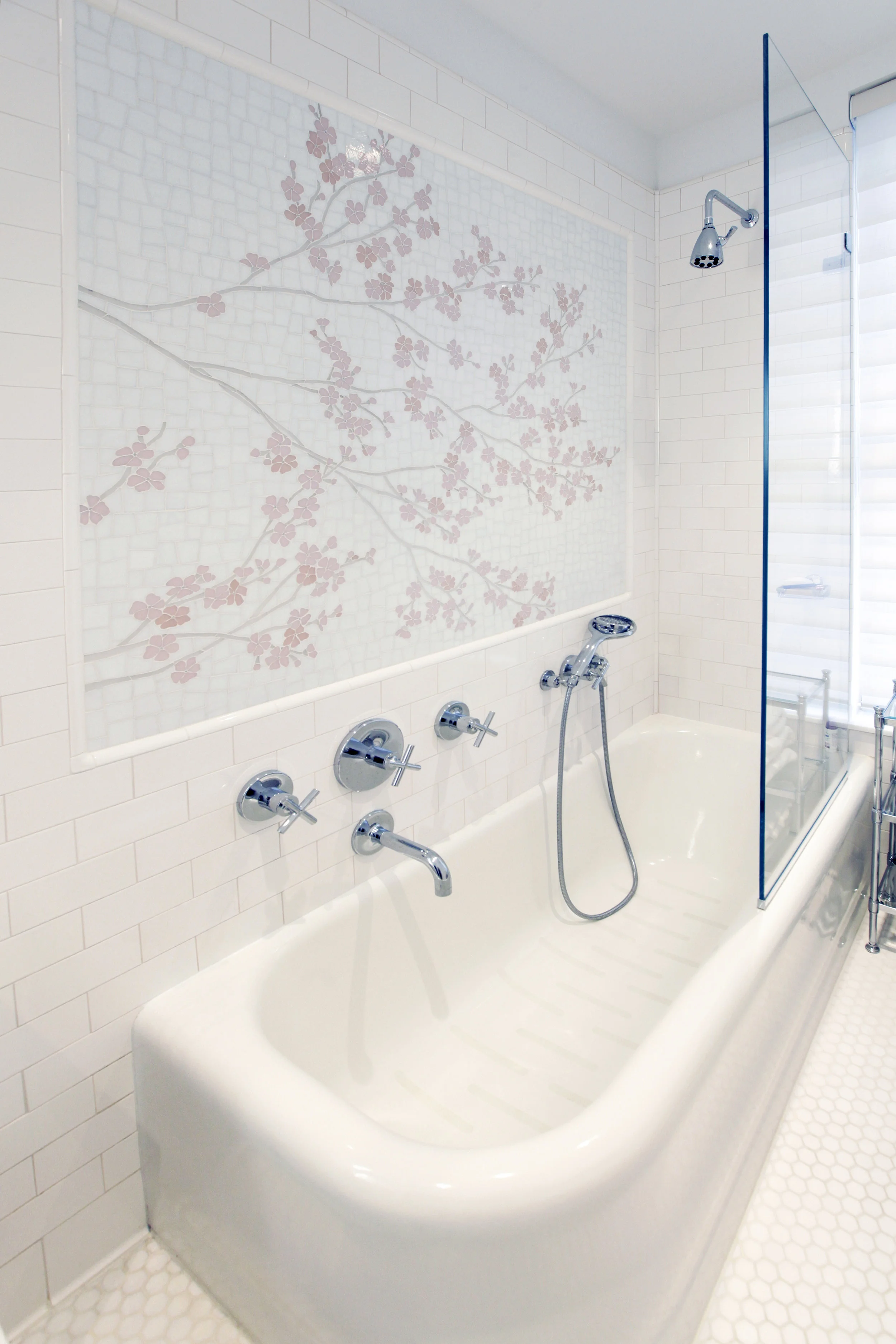 Guest Bath with inlaid tile mosaic from Cheryl Hazan Studio